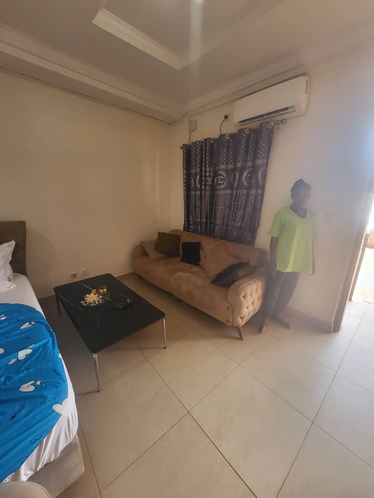 Situé au quartier Sango à Bangui, cet appartement haut standing offre un cadre moderne, sécurisé et fonctionnel, idéal pour un séjour professionnel ou personnel.